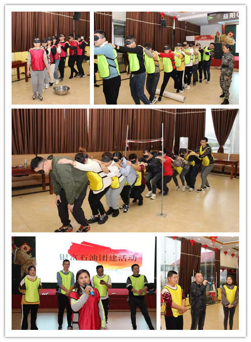 項目一個接著一個開展,現場氣氛熱烈,歡聲笑語陣陣。在“穿越電網大逃生項目”中,每個隊都抱著對團隊負責對隊友負責不拋棄不放棄的原則,精心派兵布陣進行大“逃生”。操作過程中每個隊都有“觸電碰網”失敗的事情發生,但大家都是相互鼓勵不怕失敗,從頭再來,最終順利過關。當歷經千難萬險完成“逃生”后,從內心發出的歡呼聲釋放出的全是滿滿的幸福與自豪。“神操蒙眼過障礙”項目,10個人的隊伍,前面9個人雙眼被眼罩蒙住,隊伍的前進后退、向左向右、低下身子都靠最后一個人沒有戴眼罩的人來操作。而且要穿過六道障礙物。這看似不可能完成的任務,但每個隊隊友群策群力,想出一個個妙招,在大家一次次的嘗試演練下,一個個難點被攻克。最終在三隊PK中全部完成任務。
