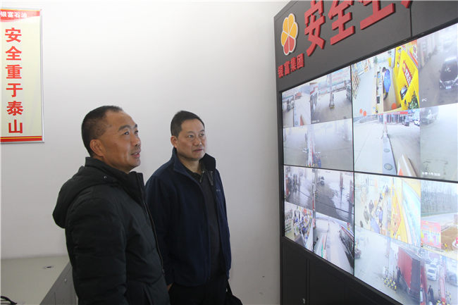 藏國政(左)副主席在公司安全生產指揮中心檢查工作