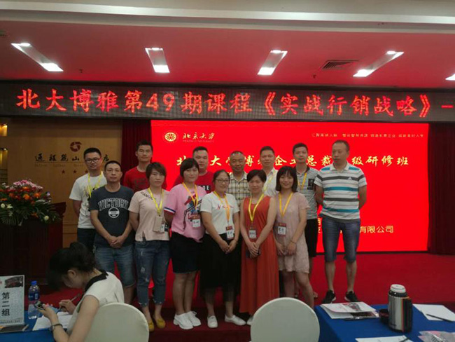 本網(wǎng)訊 7月14日至15日,公司董事長(zhǎng)郭立新帶領(lǐng)公司部分高管、站長(zhǎng)及部長(zhǎng)共14人,到省城參加北大博雅組織的培訓(xùn)課《實(shí)戰(zhàn)行銷戰(zhàn)略》。銀富石油組成這么大的學(xué)習(xí)團(tuán)隊(duì)參加學(xué)習(xí),成為了此次北大培訓(xùn)班的一道亮點(diǎn)。