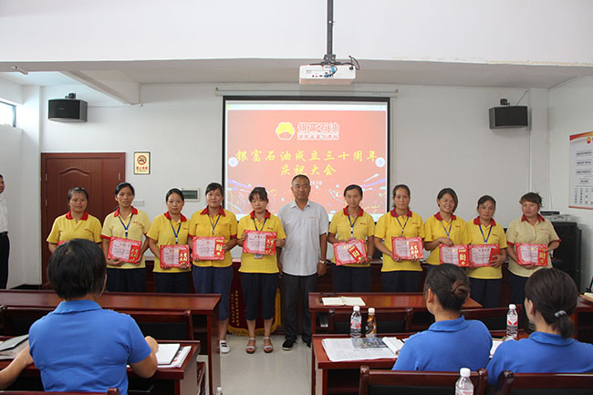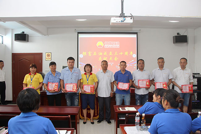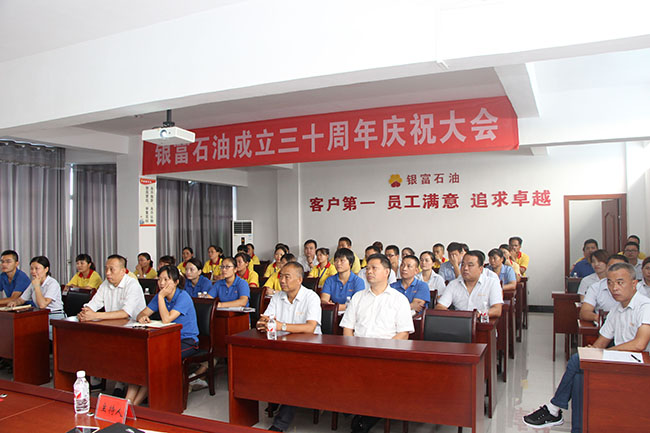 本網(wǎng)訊 8月11日上午,銀富石油成立三十周年慶祝大會(huì)在公司三樓會(huì)議室隆重舉行。來自各加油加氣站的60多名員工出席大會(huì)。