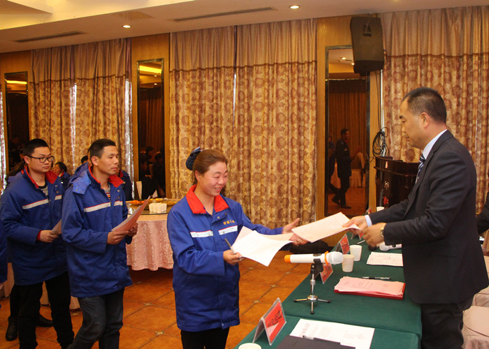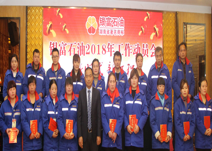 在2018年工作動員會上,公司董事長、總經理郭立新作了題為《緊跟新時代,再上新臺階》的工作報告,全面總結了2017年度公司取得的成績,精心部署了2018年的工作。并向全體員工和家屬致以新年賀辭,對2017年度先進單位、和優秀員工予以表彰,通過表彰先進更加激勵了全體員工的信念與決心。動員會上,各站站長向董事長遞交了安全生產及年度銷售目標責任狀,幾位副總經理做了表態發言,優秀站長曹丹,優秀員工代表郭秀春,優秀管理者曹艷分別與大家分享了各自愛崗敬業,為公司發展做出貢獻的經驗。會場氣氛熱烈,充滿滿滿的正能量。董事長最后向大家提出要求:“在新的一年里,我希望大家不懼困難、敢于創新、勇于挑戰,為創造銀富更加輝煌的明天,我們團結一致,扎實工作,力爭本年度目標全面達成。”全場響起熱烈掌聲。