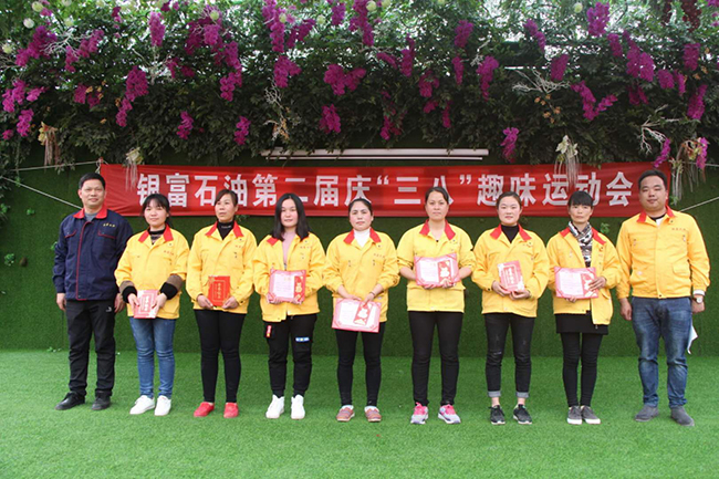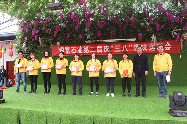 “加油!加油!加油!”拔河比賽雙方運動員使出全身力氣,比賽一度處于相持階段,個個憋紅了臉。場外觀眾搖旗吶喊,場面熱烈。3月3日上午,銀富石油第二屆慶“三八”趣味運動會在資陽區銀光運動小鎮進行。這是運動會現場的精彩比賽片段。 銀富石油工會十分重視企業文化建設,每年組織員工開展勞動競賽、技能比武等活動,常年堅持開展登山、乒乓球、歌詠比賽等文體活動,豐富員工文化生活,陶冶情操,增強團隊凝聚力。這次進行的趣味運動會,設置有“雙人盲敲金鑼”、“雙人加油”、“雙人背夾氣球”等八個項目,都具有技巧性與相互信任配合的因素在里面。通過活動寓教于樂。每個參賽選手可以玩轉八項比賽,盡情享受運動的快樂。 歡樂中伴隨著激情、趣味中增進著友誼。女員工張臘梅向記者說出心中的感慨:“公司舉行這樣的不僅為廣大女員工搭建了活躍身心、增進感情的平臺,而且進一步提升了團隊合作的凝聚力、向心力。運動給我們帶來了無比的快樂,我們今天玩得特別的嗨”! 董事長郭立新在接受益陽日報、益陽電視臺記者聯合采訪時說:“銀富石油的企業文化核心就是客戶第一、員工滿意、追求卓越。在員工滿意方面,銀富石油創業30來,每逢節假日,公司都會組織員工開展豐富多彩的有意活動。像今天這樣的趣味運動會,就是要讓員工盡情享受運動的快樂。員工能快樂生活工作,就能更好的為客戶服務,讓客戶滿意。