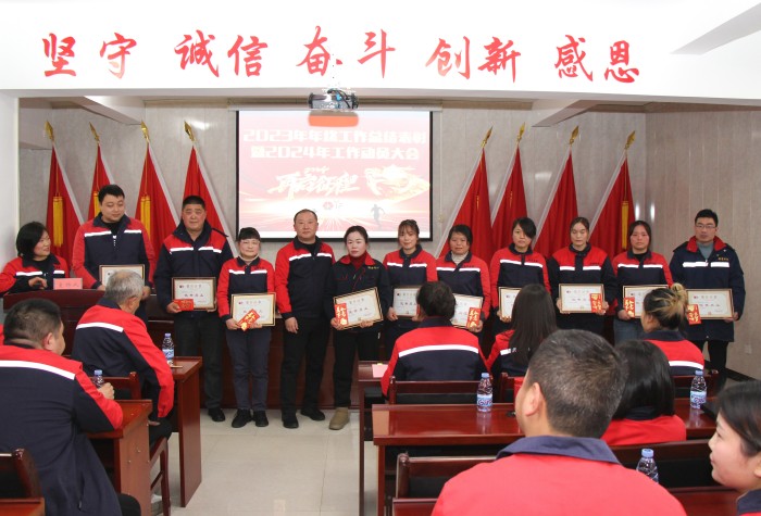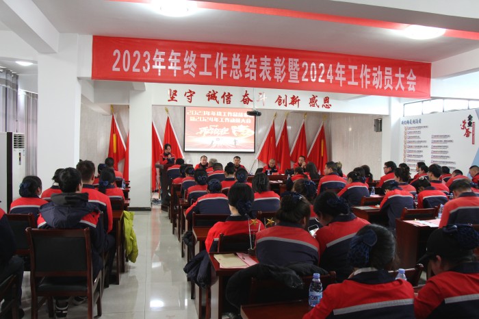 接著,總經理郭健作工作報告。他說:光陰似箭,我們告別了2023年,迎來了2024年。在這新春佳節即將來臨之際,我們歡聚一堂,召開2023年工作總結暨2024年工作動員大會。旨在表彰全公司先進,總結本年工作上的不足,同時對來年的工作做安排,制定目標。