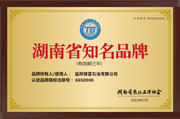 8月8日,以“開放與奮進”為主題的2022年第十六屆中國品牌節年會在長沙舉行。活動當天發布了2022年世界品牌500強、中國品牌500強等多個榜單。湖南省商標品牌協會正式公布了“2022年第一批湖南省知名品牌”名單,益陽銀富石油有限公司受邀出席并榮獲“湖南省知名品牌”榮譽稱號。