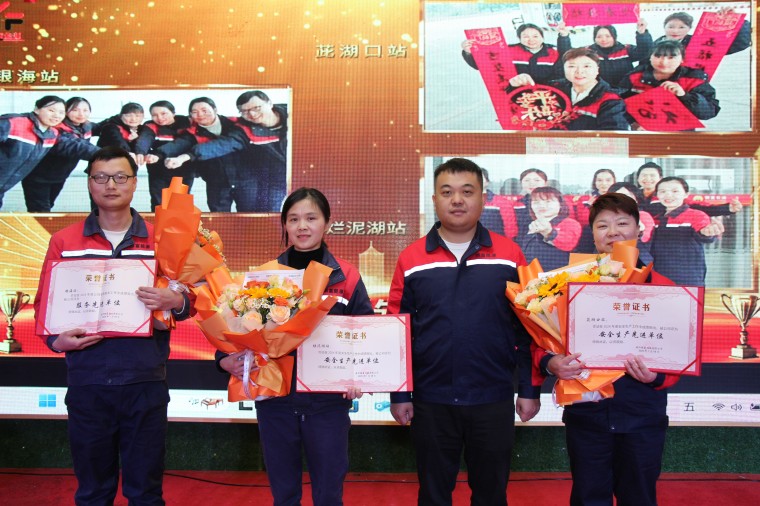 下午2點18分,大會開始。大家集體觀看了公司的宣傳片。接著總經(jīng)理郭健宣讀了《關(guān)于表彰2024年度先進單位及優(yōu)秀員工的決定》。隨后,總經(jīng)理郭健給管理先進單位、安全生產(chǎn)先進單位、服務先進單位頒獎,公司顧問王飛躍為優(yōu)秀管理者、優(yōu)秀站長頒獎,副總經(jīng)理劉建軍為優(yōu)秀員工頒獎。接著獲獎代表與大家分享了成功經(jīng)驗。管理先進單位茈湖口站站長譚珊、安全生產(chǎn)先進單位爛泥湖站、服務先進單位銀海站、優(yōu)秀管理者張臘枚、優(yōu)秀站長郭大鵬、優(yōu)秀員工代表陽彬、崔婷、陳浩、劉娟分別與大家分享了各自工作的成功經(jīng)驗。精彩分享贏得熱烈掌聲。