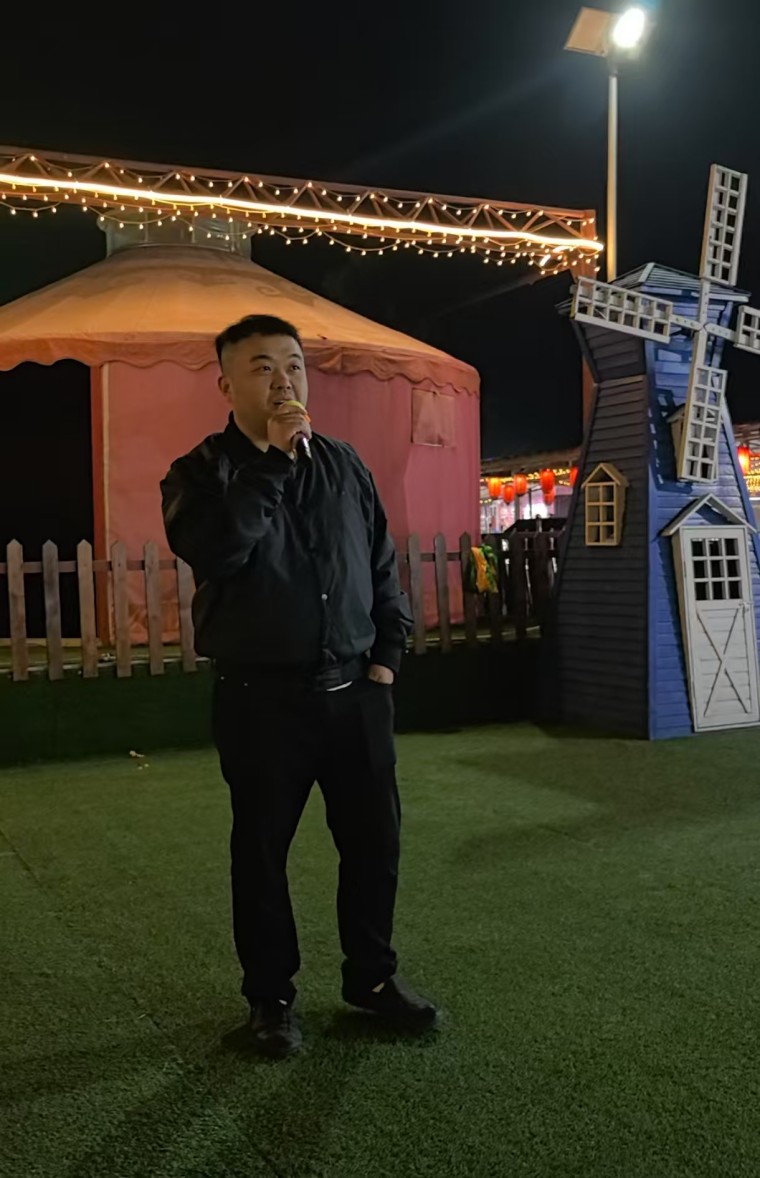 崎嶇的賽道上,越野摩托車手拿出高超車技,與對手一決高低;卡丁車賽場你追我趕,誰都想跑得最快,成為極速英雄;CS場地,你攻我守,誰都想成為勝者一方……圍爐煮茶,大家在一起,放下一切煩惱,一起煮茶,一起烤年糕,烤玉米,一起聊天拉家常,放飛心情,共敘友情,其樂融融;快樂的團建,少不了美味佳肴。烤全羊,涮牛肉,清燉跑山雞……滿足了大家的味蕾。或以茶代酒,或美酒互敬,相互祝福,情真意切,特別暖心。銀富石油的家文化在這里自然流淌。晚餐之后,在總經理郭健和董事長郭立新的帶領下,開始了嗨翻天的篝火晚會。董事長親自點燃象征著銀富石油事業紅紅火火,家人快快樂樂的篝火,大家在一起圍著篝火唱著歌,跳著舞,享受著美好的時光。董事長郭立新和夫人黃艷紅夫唱妻和,深深地感染著大家,總經理郭健一曲《成都》把現場氣氛拉到爆棚。