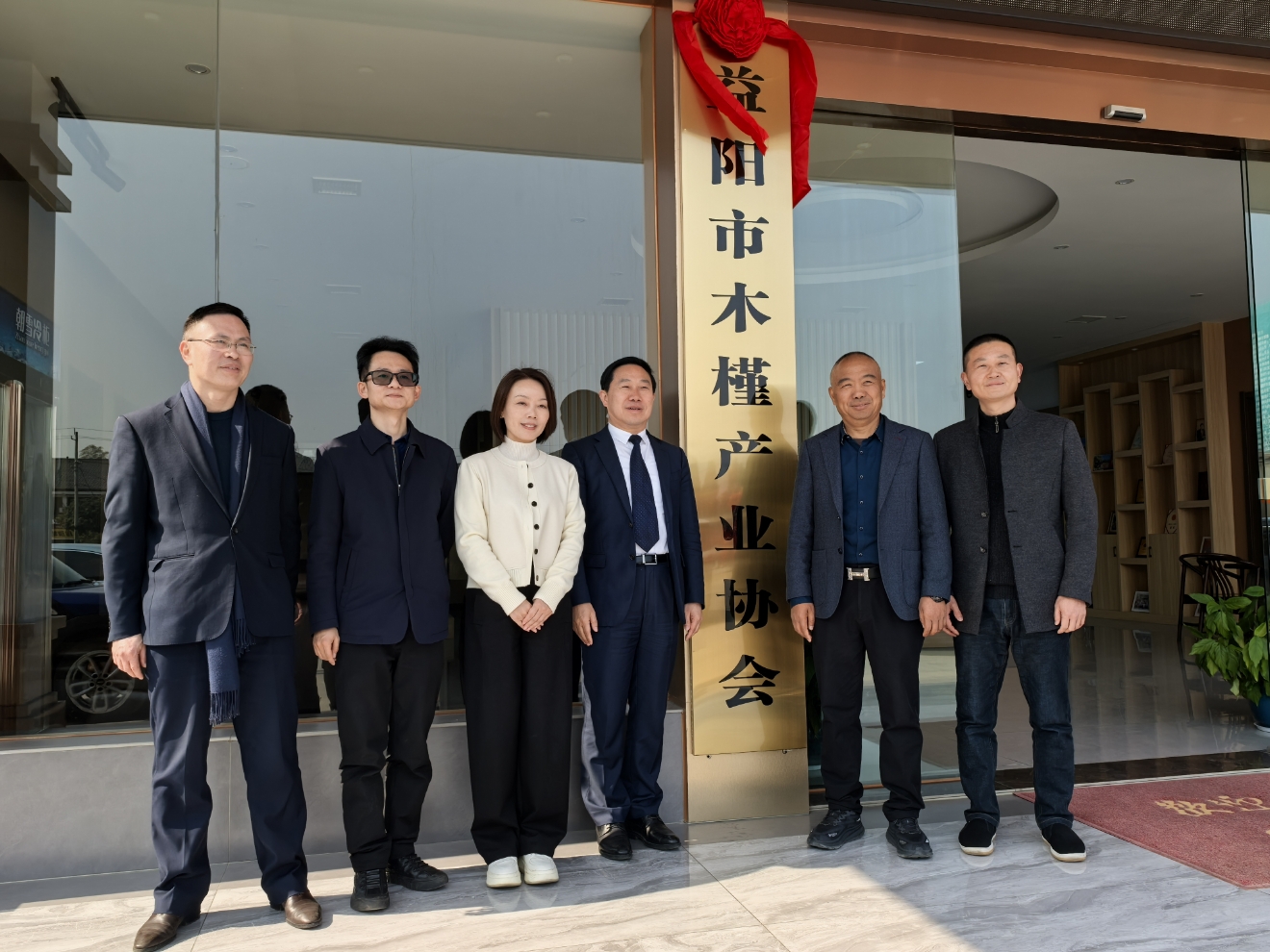 彭艷梅(左三)與張金龍主席(左四)、郭立新會長(右二)在協(xié)會門前合影留念。