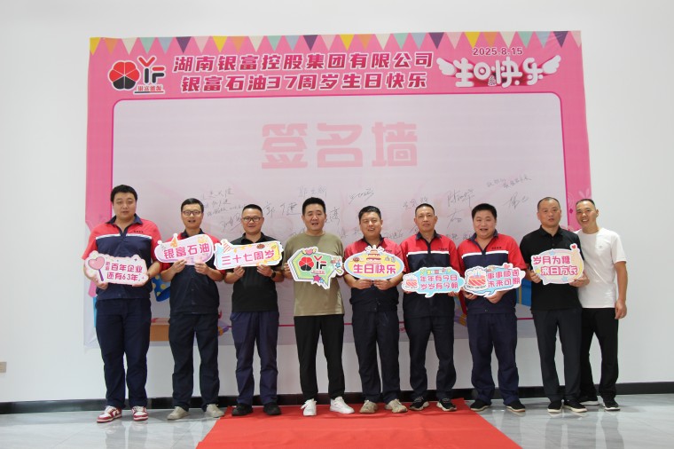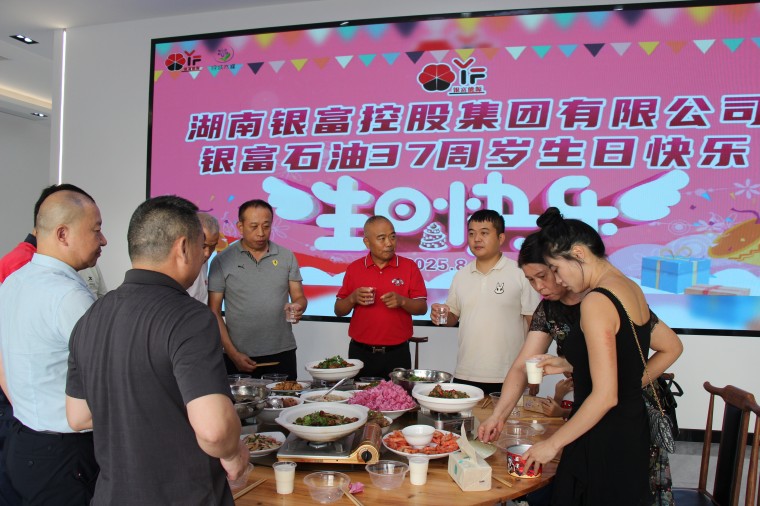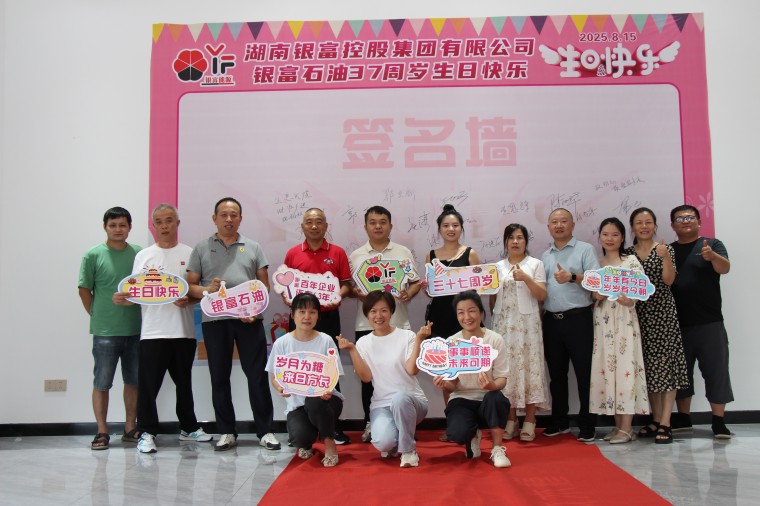 8月15日下午5時,星光初綻,湖南銀城木槿科技公司文化展示廳里華燈璀璨,銀富石油公司在此隆重集會,熱烈慶祝公司成立37周年。公司總經(jīng)理郭健、總部全體成員及各加油加氣站站長們盛裝出席,銀富控股集團董事長郭立新出席活動,共同見證這一榮耀時刻。