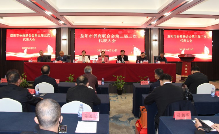 本網訊 10月23日,益陽市僑商聯合會第三屆三次會員代表大會在紫金山大酒店隆重舉行。大會以“凝聚僑心、匯聚僑力、共商發展、同興益陽”為主題,省、市相關領導、海內外僑領及全體會員代表共同出席。